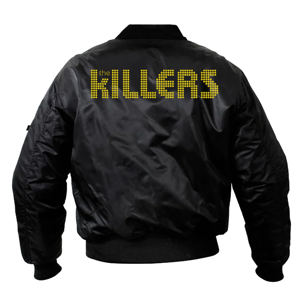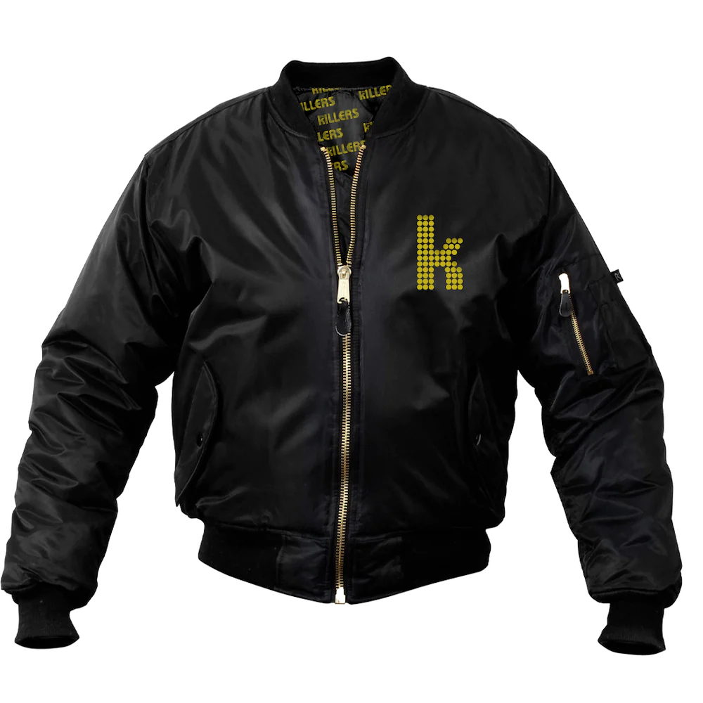BLACK SATIN JACKET FEATURING "K" LOGO ON FRONT, "THE KILLERS" LOGO ON BACK AND "THE KILLERS" LOGO REPEATED ON THE INSIDE LINING.